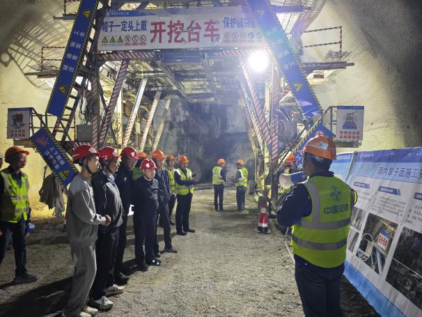 观摩会聚焦于青文高速项目创新构建并深入实施的“隧道1+1+1+1+2”标准化管理体系,即以“一旗帜、一学堂、一监屏、一通风、两通道(施工通道与逃生通道)”为核心要素的现代化工程管理框架。该体系通过系统整合党建引导、人员培训、智能监测、环境保障与应急疏散等功能,实现了“党建引领定向、学堂教育固本、智能监控预警、健康通风护人、双通道保安全”的多维度协同联动。