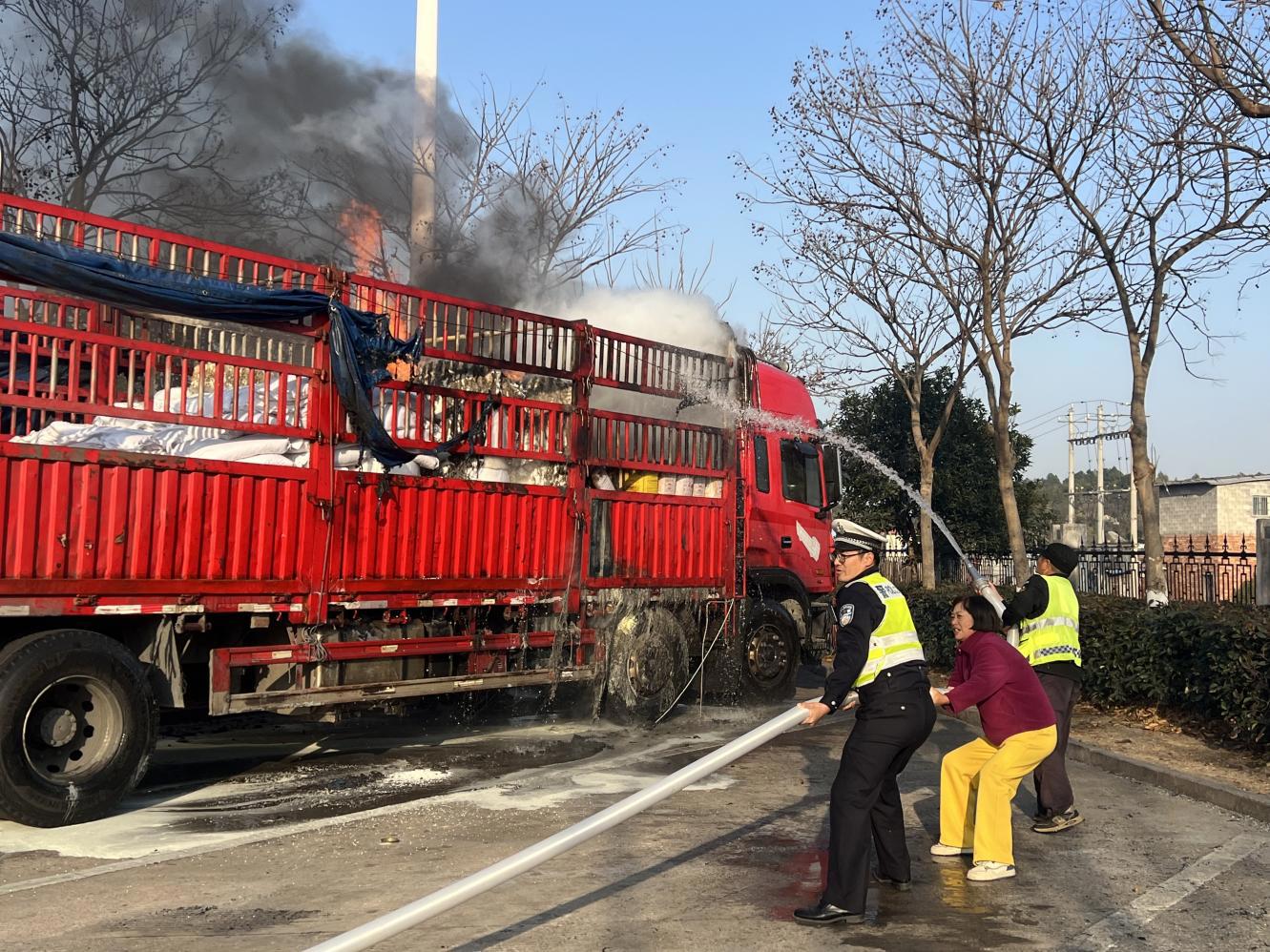 1月12日下午3时35分,市交发集团经营公司管辖陶山服务区南区停车场内,一辆停靠的货运车辆突然冒出浓烟并出现明火,服务区现场工作人员在日常巡查中第一时间发现异常,立即进入应急状态。