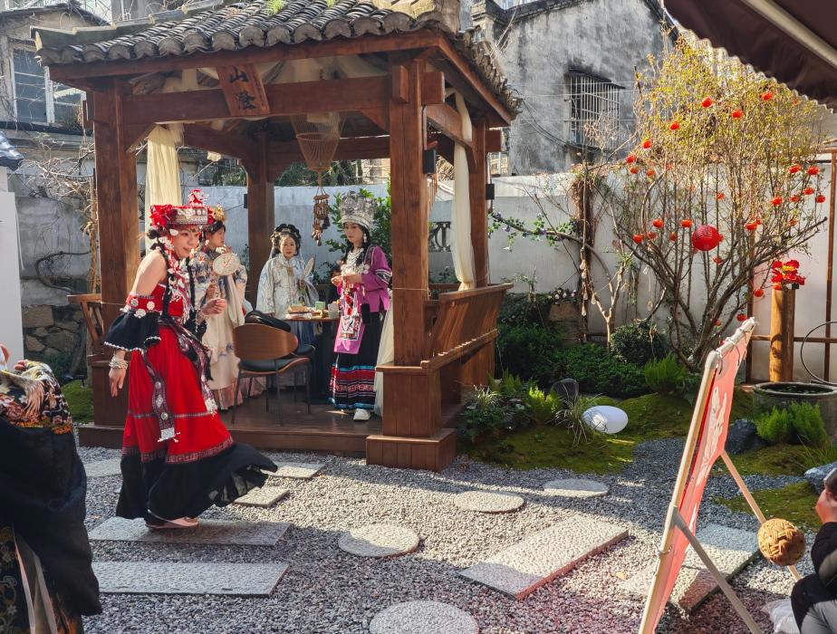 活动伊始,大家漫步于梧田老街的青瓦古巷与小桥流水间,沉浸式感受传统文化的深厚脉络与独特韵味。随后,团队协作游戏环节精彩上演,投壶、蹴鞠、捶丸等传统项目让大家热情高涨,职工们在默契配合中增进交流、凝聚合力,展现了积极向上的精神风貌。紧接着的非遗手工制作体验中,大家认真聆听讲解、亲手描画珐琅杯、缝制香囊,在一笔一画、一针一线间细致感受传统技艺的魅力,近距离体悟非遗文化的博大精深。最后,汉服走秀环节将气氛推向高潮,职工们身着典雅汉服,仪态大方、步履轻盈,尽显国风古韵与青春风采,成为老街一道亮丽的文化风景线。