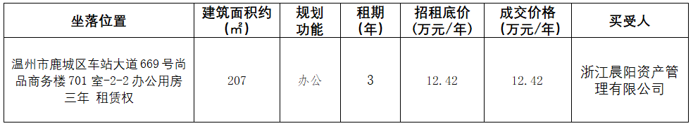 尚品商务楼701室-2-2办公用房三年租赁权竞价结果公示