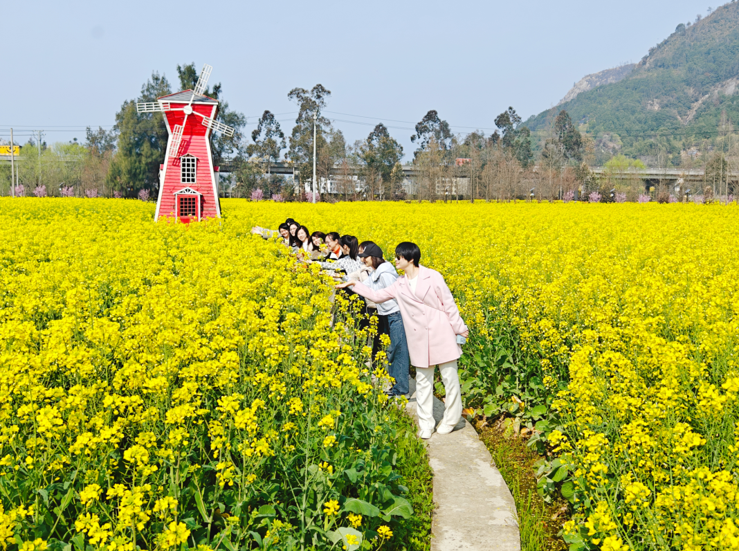 走进芦湾村的文化园区,区内成片的油菜花已然盛开,田野金黄,蜜蜂忙碌,花香弥漫,宛如金色的海洋。浓郁花香令人陶醉,靓丽风景也与女神们来了一场美丽的邂逅。女神们在花海中赏花、留影,花的娇艳和女神们的笑颜交相辉映,随行的男同事则殷切地帮忙拍照,每个人的脸上都荡漾着暖暖春意。