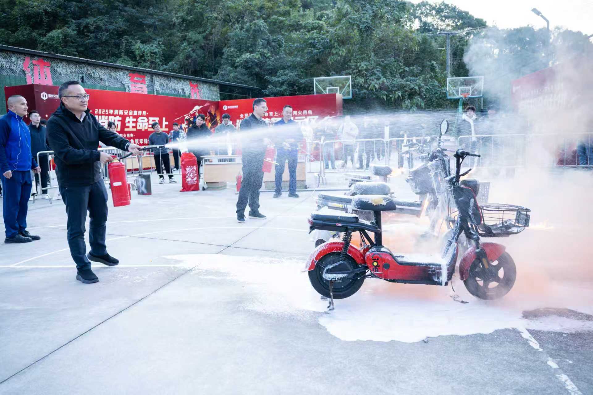 在装备展示区,消防员现场讲解了各类灭火器、消防栓、灭火毯等器材的使用方法和适用场景。干部职工亲手操作、亲身体验,通过实践掌握了消防器材的正确使用方法。针对电动自行车火灾这一高风险隐患,活动还设置了专项灭火演练,大家分组实操,掌握了灭火要领,提升了实战能力。